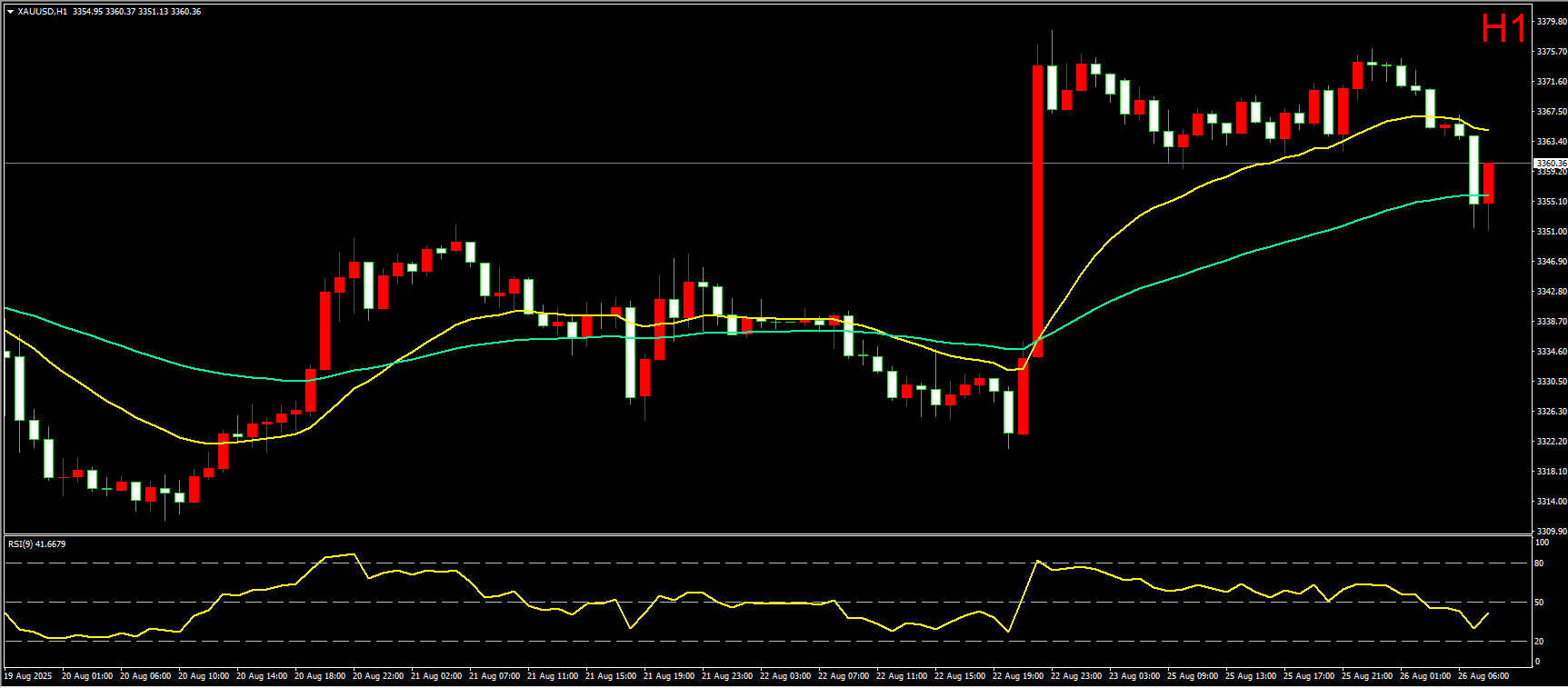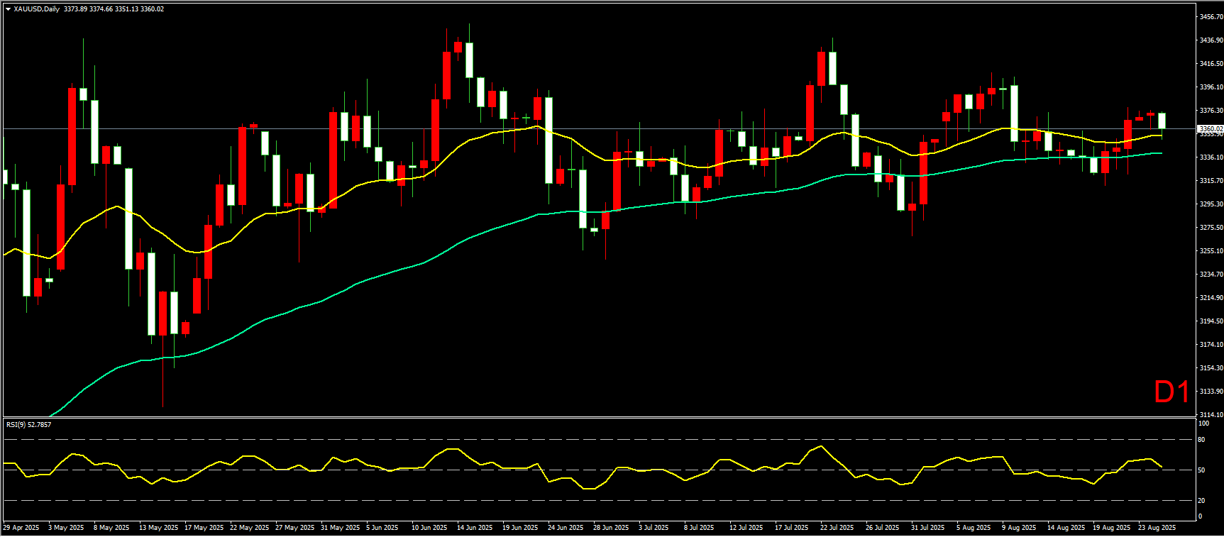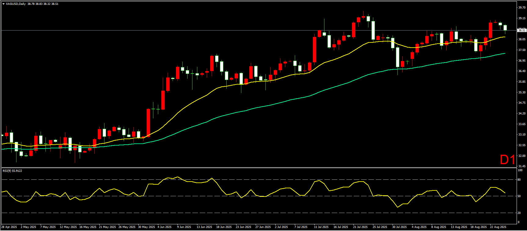 昨日,尽管市场认为美联储9月降息的预期几乎板上钉钉,但降息预期已基本被市场消化殆尽,且有不少专家表示9月降息更多是一次性的预防性降息,最终导致黄金上涨乏力,日内以反弹高位横盘震荡为主,日线收下影较长的小阳线,但隔夜市场金价突然转弱,当前日线呈阴线形态回踩20EMA均线。从较长的周期来看,黄金继续保持震荡收敛形态,高点不断降低,低点不断抬高,暂时没有明确方向。短线关注20EMA均线支撑,若始终不跌破20EMA均线,则金价逐步消化3400整数关口压力后,有望向上突破。