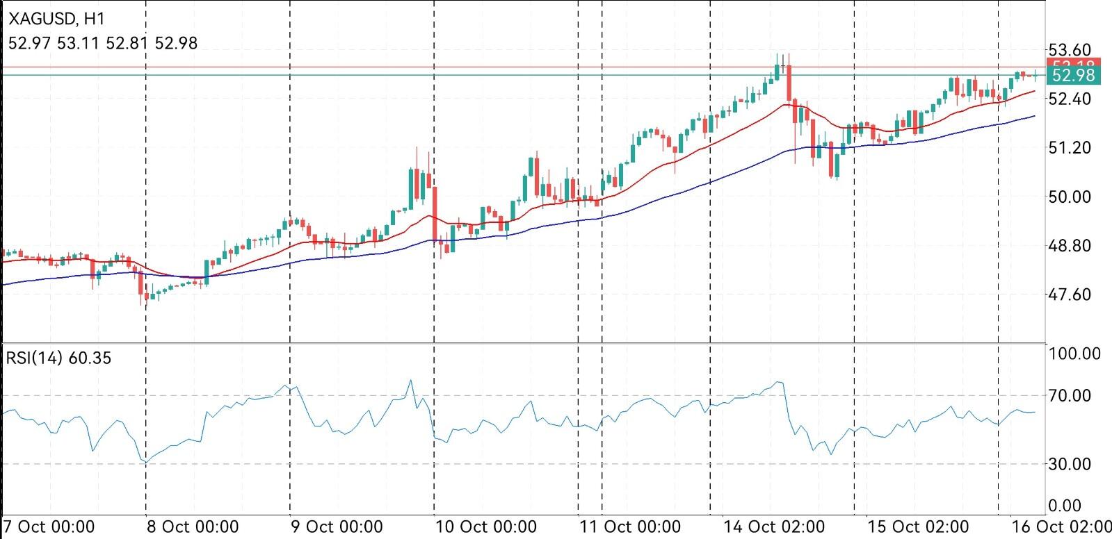 小时图上,昨日白银在开盘初期逐步站上两天均线,并由此震荡走高,虽然美盘有所回落,但也仅回踩到20EMA位置就重新企稳,而隔夜走势更是继续上探,目前已逼近此前历史高点位置接近53.00美元。短线形态上看,白银在前高位置理论上仍有压力,日内会先震荡消化压力再向上突破,一旦突破,则白银有望冲击54.00美元位置。因此在操作上建议,可借顶部压力回调时逢低做多,博弈银价再创新高。