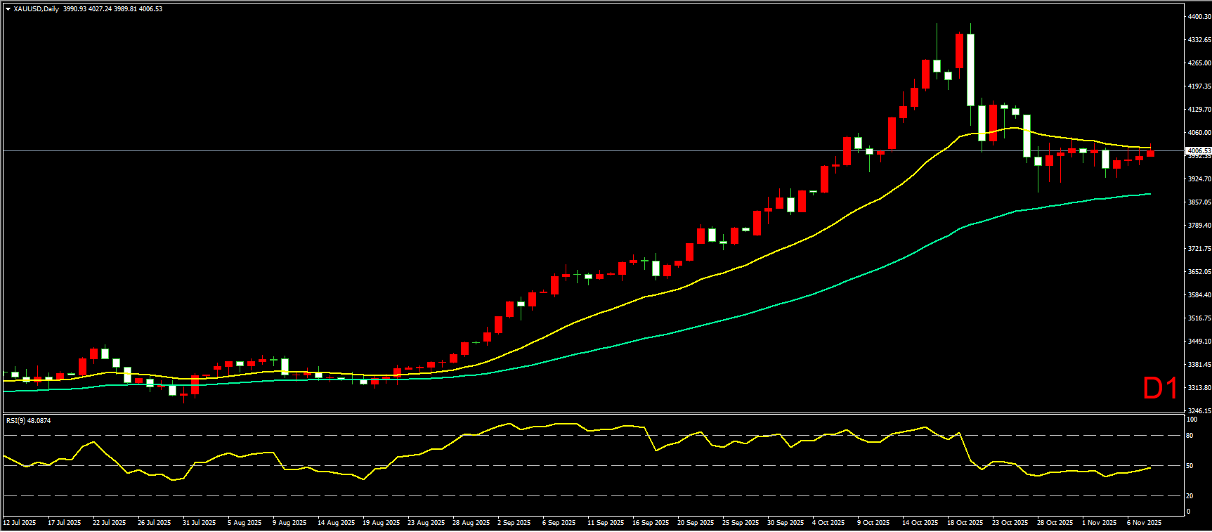基本面:上周五,尽管美股盘中一度深跌,但美国政府停摆有望结束的希望,在尾盘提振美股从日内低点大幅反弹。但本周纳指仍录得4月以来最差单周,标普500也一度跌破50日均线。美国消费者信心公布后,10年期美债收益率一度完全回吐日内稍早涨幅,但随后仍收涨1.35个基点,下周美国财政部将发行大量国债。美元三连跌,黄金日内震荡于4000美元附近,周线勉强收十字阳星,结束此前两周连跌。