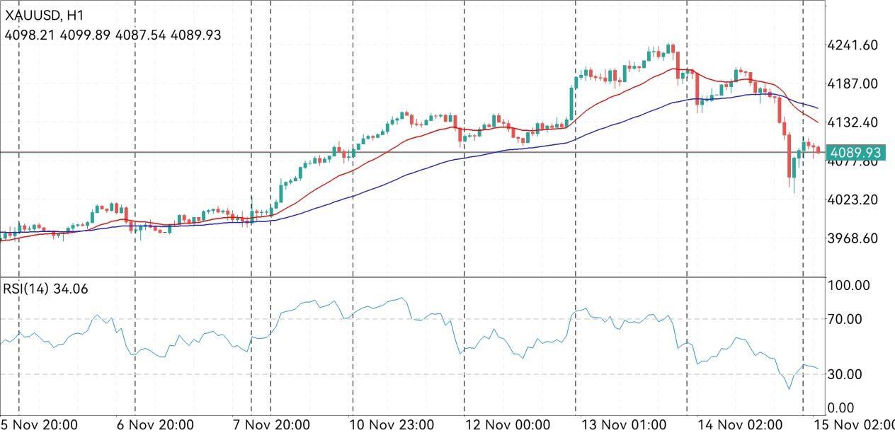 小时图上,上周五黄金一度围绕20EMA均线震荡,但随着逐步进入美盘阶段,金价跌破60EMA均线,开启新一轮下探动作,一度跌至4032附近才有所反弹。短线形态上看,金价跌破左侧震荡区间,令整体形态偏空,若日内不能重新回到均线上方,将短线走势拉回震荡格局,则金价后市大概率将继续震荡下行。因此在日内操作上建议,先以高抛低吸震荡操作位置,关注震荡重心变化情况,若整体向下收敛,则金价后市大概率将继续下破。