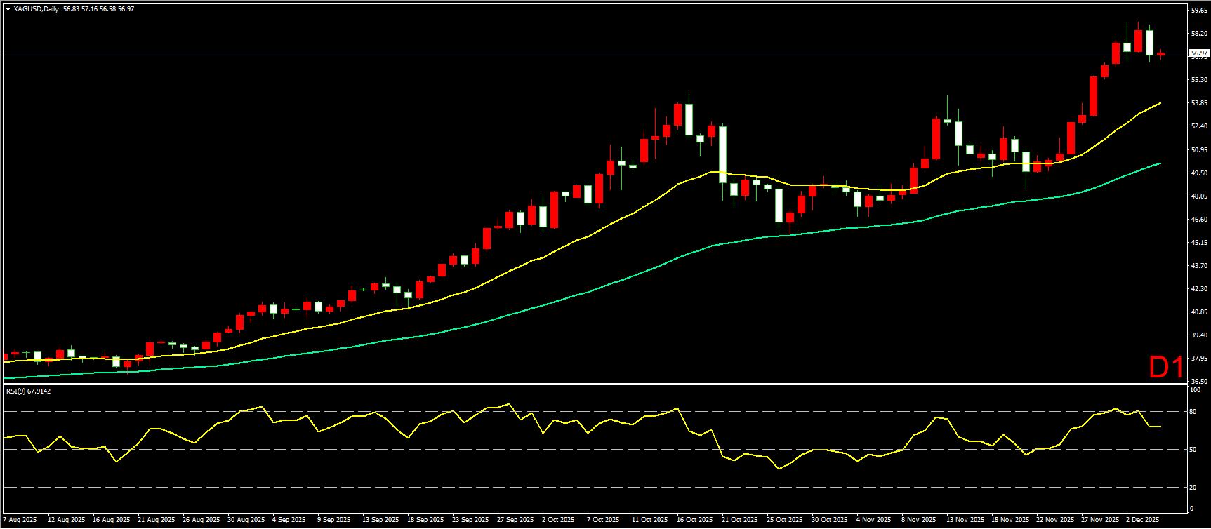 小时图上,昨日白银开盘后无力上攻,反而转头连续跌破20EMA和60EMA均线,确认RSI指标顶背离形态,引发白银震荡回落,如期回踩56.60附近短线支撑。若今日反弹无力,继续下探再刷新低,则白银或将跌至54.10附近。不过,考虑到晚间有重要数据公布,在公布前预计不会有太大波动,因此在操作上建议,先以高抛低吸震荡操作为主,待数据公布后,再顺势跟随。