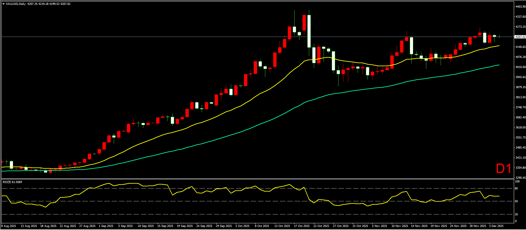 日线图上,昨日白银未能延续此前强势多头,日内震荡回落,日线收略带上下影的阴线,吞没前一日的阳线。整体走势上,白银形成阴吞阳偏空形态,打断短线多头节奏,若今日晚间公布的数据不是强利多,白银或将逐步震荡回踩20EMA均线寻求支撑。