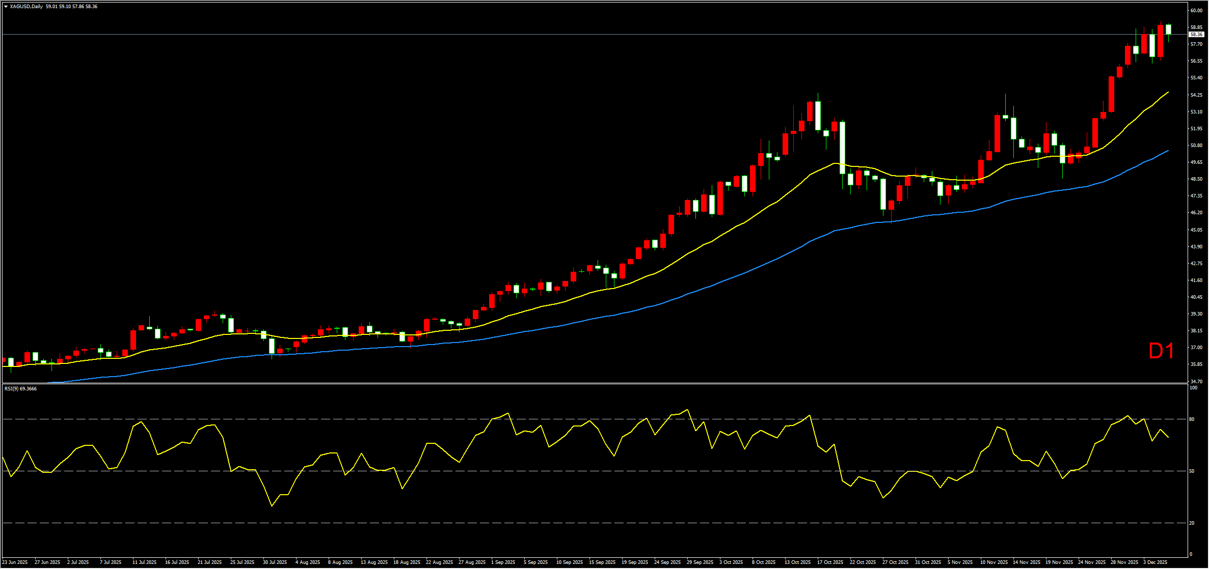 小时图上,上周五白银在开盘后快速从均线下方回升至均线上方,直接冲击前高压力,并在美盘阶段刷新历史高点,但尾盘略有回落,回踩20EMA均线支撑。短线形态上看,白银新高动作说明多头力量依旧强劲,若今日整体保持在均线上方震荡,则后市仍有望继续刷新高点,相反若日内跌破60EMA均线,白银将转为高位震荡,等待美联储降息落地后再选择方向。因此在操作上建议,先以逢低做多为主,博弈白银继续走高。