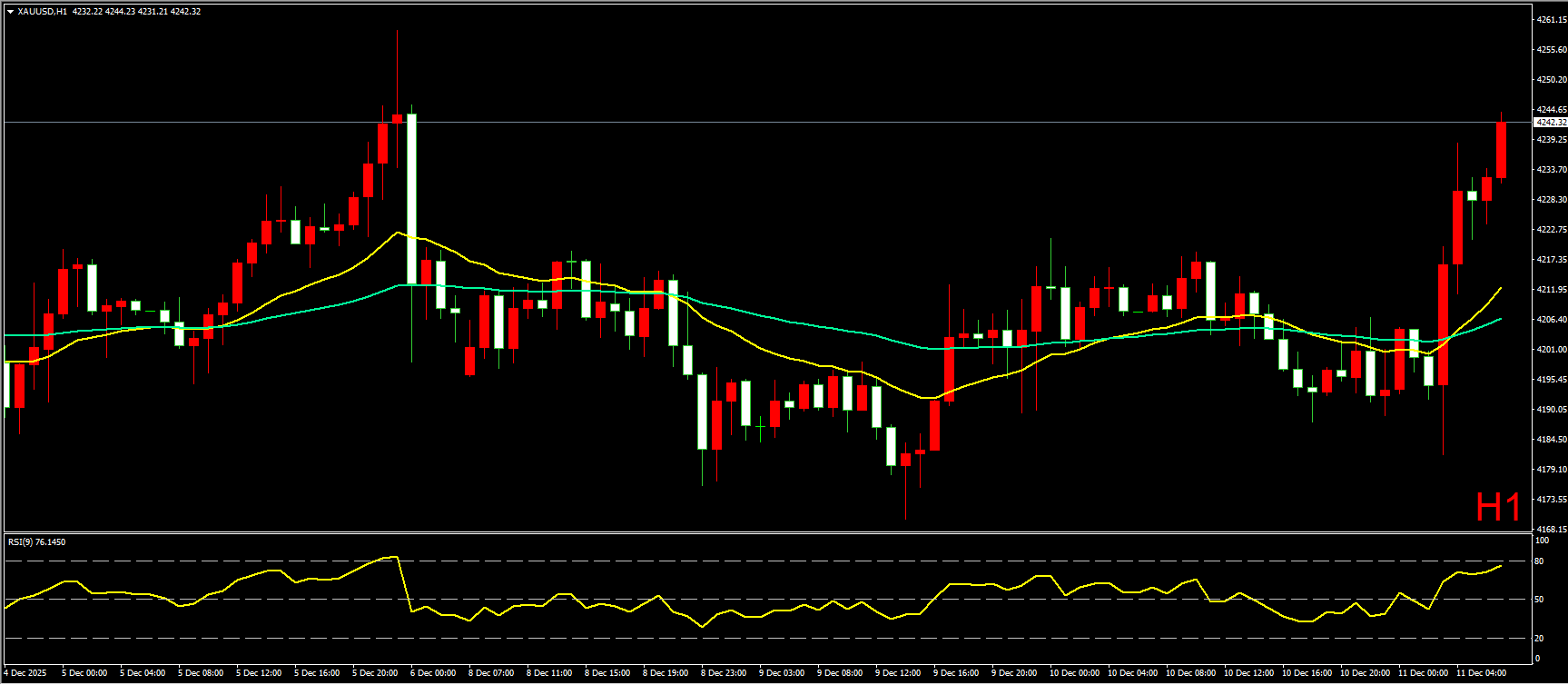 小时图上,昨日黄金如期围绕均线上下震荡,直到美联储降息落地后,金价剧烈震荡后最终向上突破,逼近近期箱体震荡的高点4250附近。短线走势上看,黄金再度逼近震荡区间上沿,短线休整后有望强势突破,冲击4300上方历史高点压力,因此建议先以逢低做多为主,博弈向上突破。