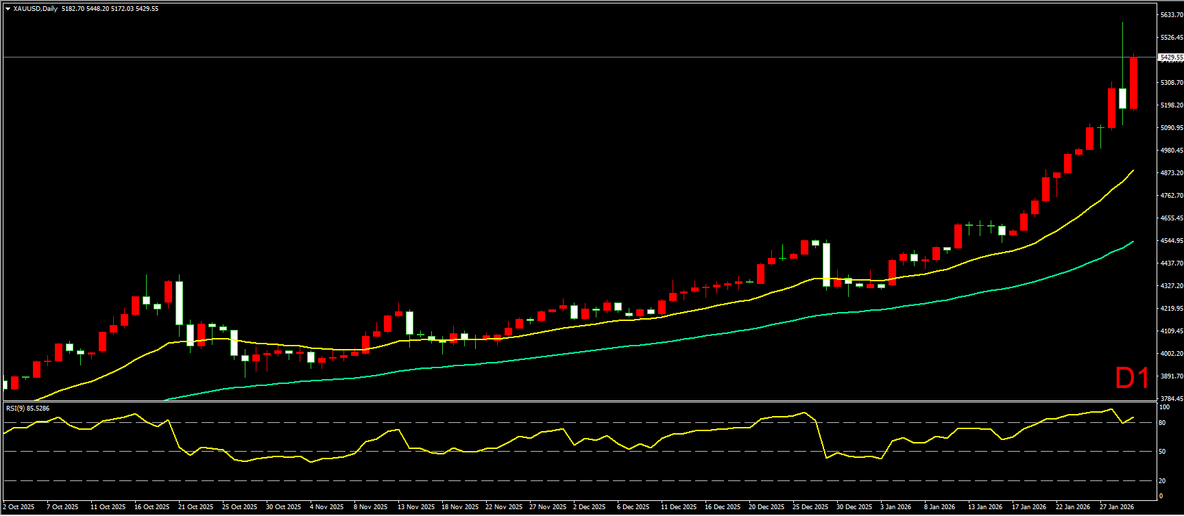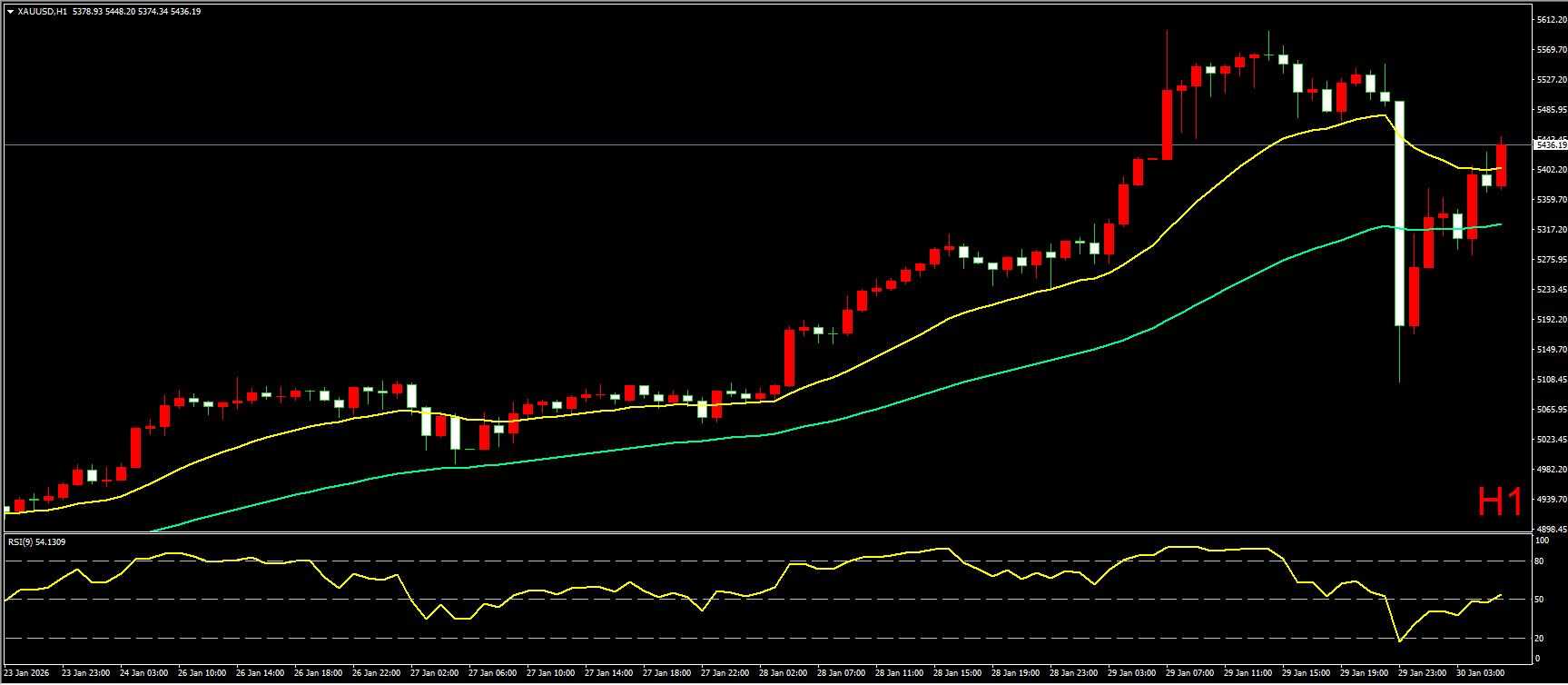 基本面:昨日,微软AI支出引爆忧虑,股价暴跌10%,拖累美股大盘,纳指跌0.72%。10年期美债收益率小幅下跌0.6个基点至4.233%,金价早盘曾大涨3.3%、逼近5600美元历史高位后跳水,一度较日高暴跌近9%,随后跌幅收窄。白银创下121美元的历史新高后,一度重挫超12%。