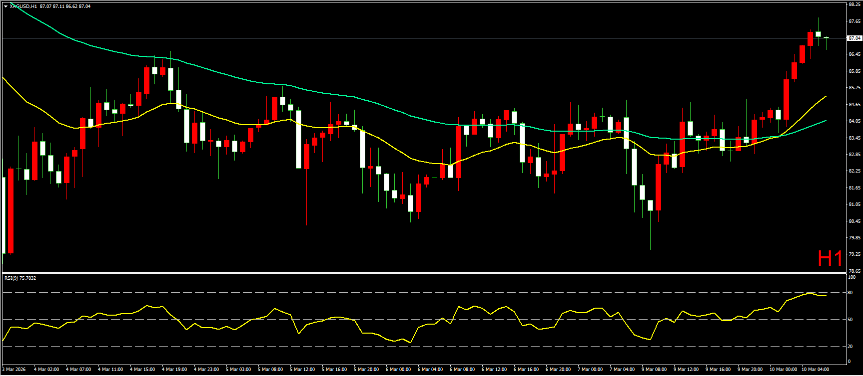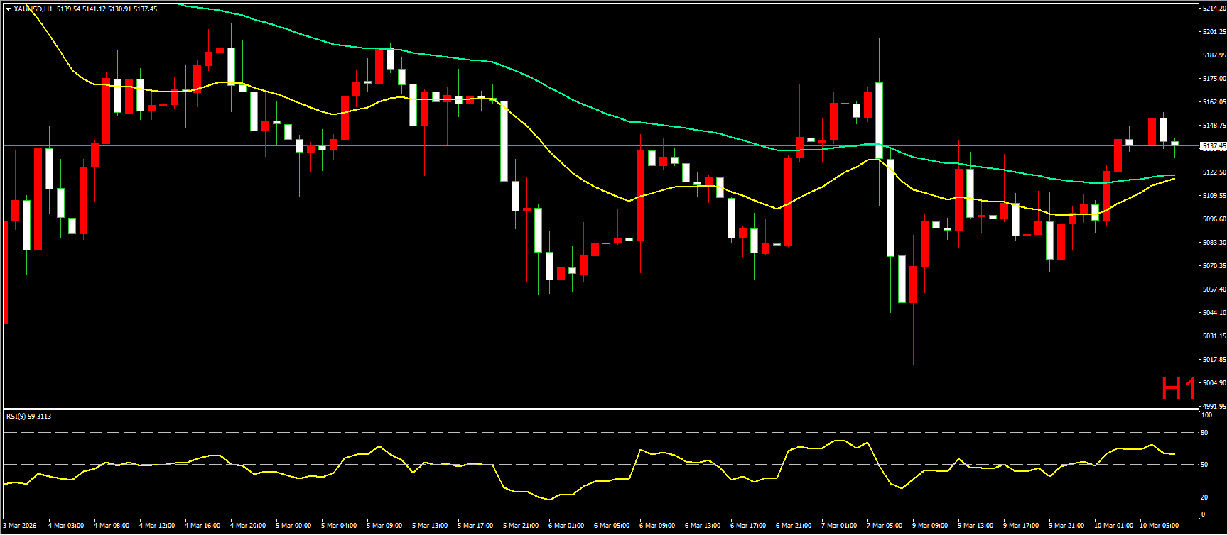 小时图上,昨日黄金在早盘快速跳水,一度跌至5014附近才有所企稳,随后逐步反弹至60EMA均线位置,但仍收60EMA均线压制,直到隔夜尾盘,特朗普表示将快速结束伊朗战事,金价才逐步站上60EMA均线。短线形态上看,黄金继续保持回落低位震荡走势,震荡重心有所抬高,整体由均线下方震荡转为围绕均线震荡走势。若今日能突破昨日早盘高点,则黄金有望开启新一轮多头走势。因此在操作上建议,先以回调做多为主。