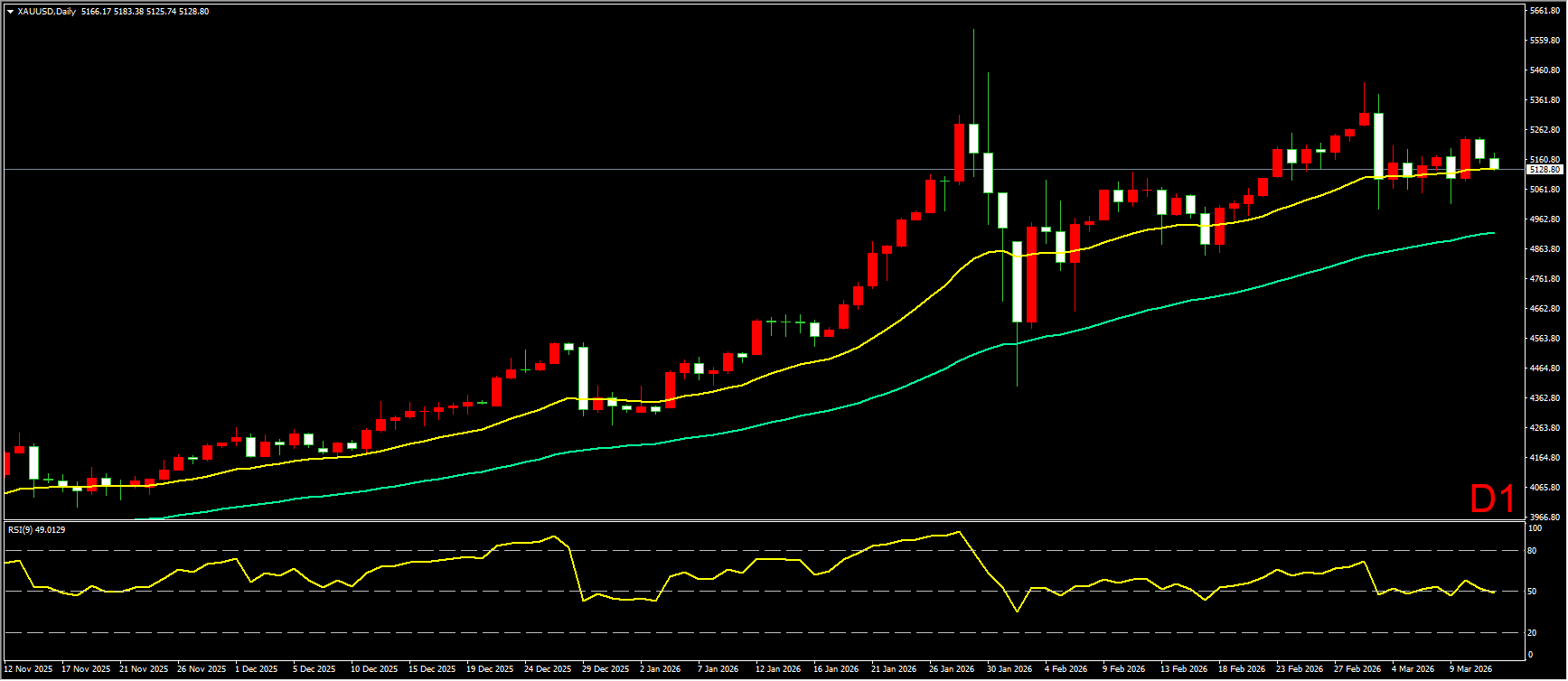 昨日,虽然美国CPI数据相对温和,但霍尔木兹海峡通航依旧受阻,市场恐慌情绪再度蔓延,黄金日内震荡回落,日线收略带上下影的阴线,将前一日的大阳线回吐一半。整体形态上看,黄金继续维持在20EMA均线上方震荡走势,在中东局势未明朗之前,黄金难以走出明确方向。