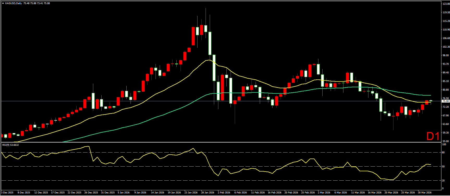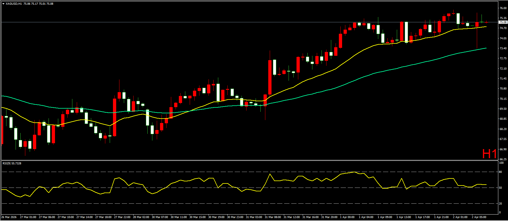 小时图上,昨日白银开盘后小幅回踩均线后继续沿均线震荡走强,但日内涨幅并不大,最高仅涨至75.88。短线形态上看,白银虽然继续在均线上方,但RSI指标已有顶背离雏形出现,若今日失守均线,则顶背离形态确认,银价或将转为震荡走势。因此在操作上建议,先以高抛低吸震荡操作为主。