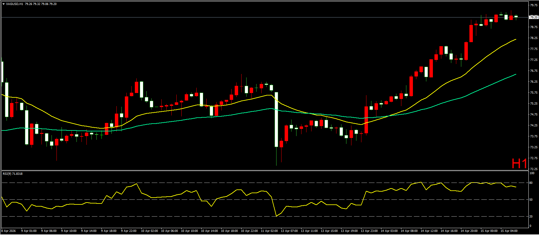 小时图上,昨日白银同样从开盘就保持沿均线震荡上行,一路逼近80美元左右才略有横盘。短线形态上看,白银多头趋势保持较好,未有见顶现象,但日内偏离均线略多,因此在操作上建议,尽量等回踩均线后再博弈多单。