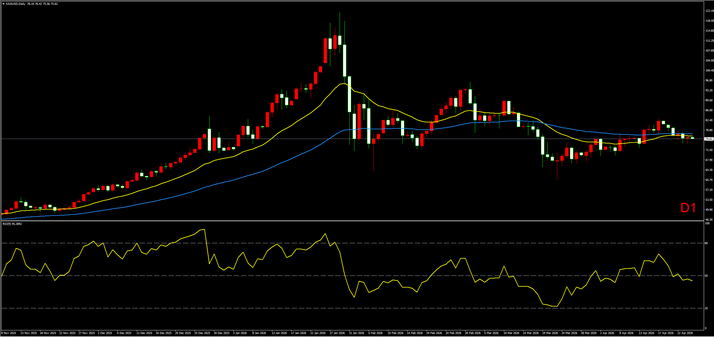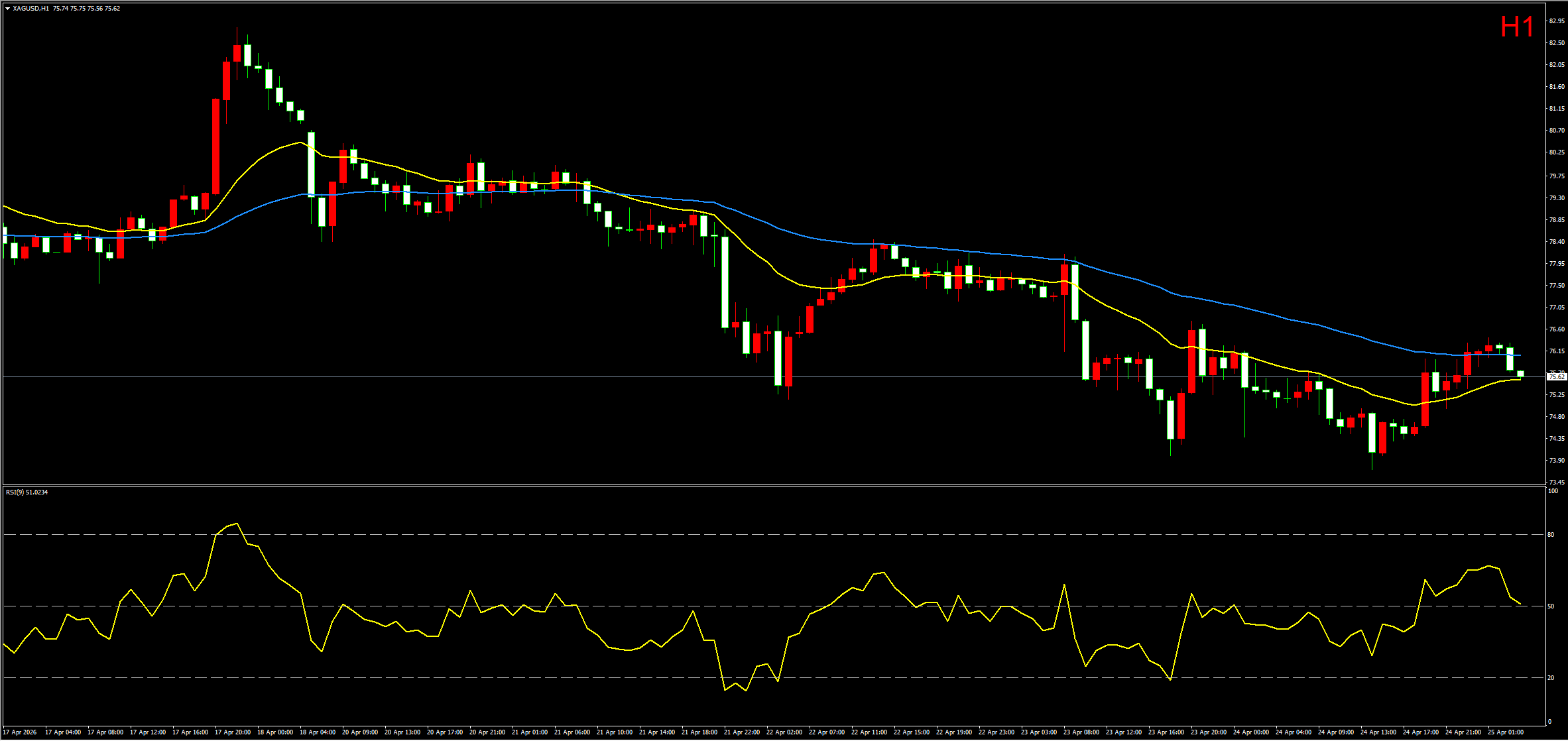 日线图上,上周五白银与黄金一样,日内触底反弹,合并周六K线,日线收长下影小阴线。整体形态上看,白银跌破均线后,并未加速下行,而是在73.80附近逐渐企稳,连收多跟长下影,后市大概率将转为围绕均线震荡收敛走势。