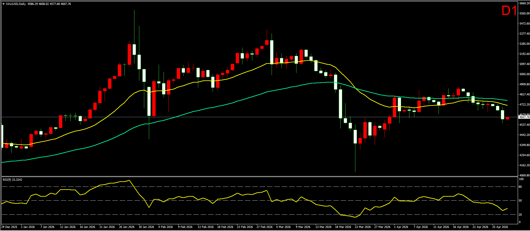 昨日,受美联储换届和油价上涨影响,黄金日内震荡走低,日线收带上下影的阴线,跌破4600美元。整体形态上看,黄金在均线下方震荡,阴线实体逐渐放大,形成黑三兵等偏空形态,短线或继续震荡下探。不过,4500附近仍有支撑,且晚间有美联储会议,预计在会议前,金价维持弱势震荡,待会议后再选择方向。
